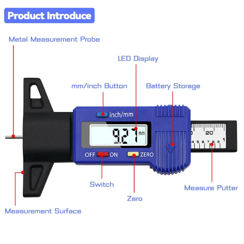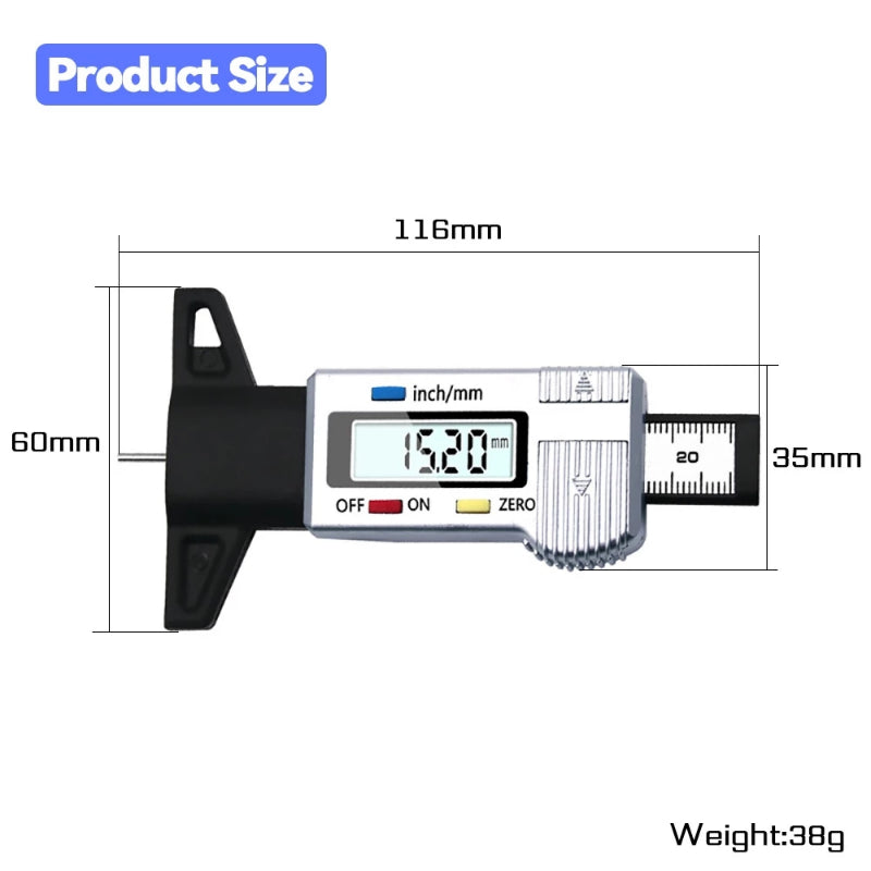 Accurate measurement: Get precise measurement of your car tyre thickness with this digital gauge.